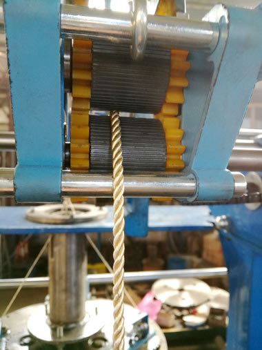 Three strands twisting machine is of high production and easy to operate. The ropes are commonly used for handbag ropes, decoration, etc.