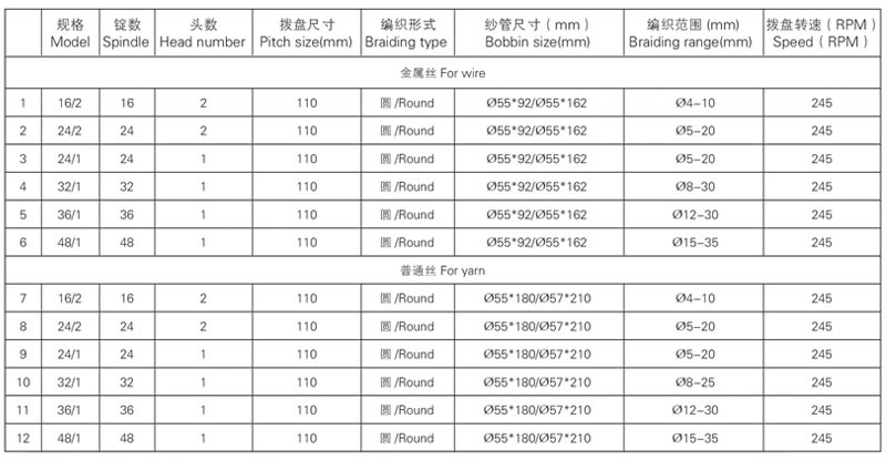 The high speed braiding machine we produce are commonly used to braid many kinds of both round and flat ropes/cords/laces ( tow ropes, luggage ropes, high pressure rubber hoses, decoration ropes, aerial ropes, elastic ropes, etc) and cables (shielded cable, etc.)