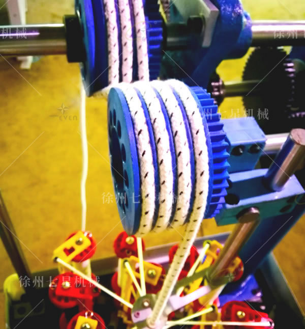 用途:織帶(鞋帶、服飾帶、松緊帶、波浪帶、滾邊帶、肩條帶等),測量繩、手提繩、拖車繩、工具用繩,高空作業繩等各種繩帶的編織機。機器產量高,穩定性好,可根據客戶需求定做設備。