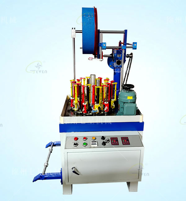 橄欖魚線編織機(jī),電控箱用加長(zhǎng)電控箱,編織橄欖型線繩,橄欖規(guī)格10mm,12mm,14mm,16mm。放線盤尺寸直徑330,寬度25,內(nèi)孔3.6cm,收線架適用Φ200mm。平滾筒、雙壓輥牽引、后帶落線架。掛輪機(jī)配一套。90彈錠,紗管尺寸47*142。收線架,配筒體直徑200,寬度250,外直徑500mm活動(dòng)線盤。裝12個(gè)芯線傘桿,傘桿下裝2套夾線器,及斷線感應(yīng)裝置,雙變頻,帶減速機(jī)。帶感應(yīng)開關(guān),計(jì)米器,芯線撐線圈直徑150mm,材質(zhì)不銹鋼,收排線架樣式按照魚線收線架做,周長(zhǎng)約1-1.2米。