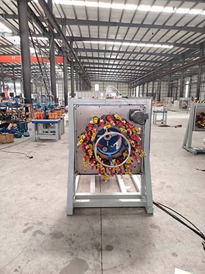 1.編織碳纖維和玻璃纖維。2.2套設備均帶4錠纏繞 纏繞紗為碳纖和玻纖外放紗,紗線紙筒內徑75mm、高度280mm 直徑200mm 3.纏繞機的中心內孔做大于Ø120mm。4.為保證碳纖不打扭纏繞用被動形式放線帶張力剎車。130復材專用 錠子。紗管65*210。5.纏繞機要有浸膠裝置(沾膠加膠槽)。每套編織機帶。一個膠桶,形狀為方口深100mm、下面是漏斗狀深100mm,底部出口加個100mm長度的圓管。膠桶帶20mm翻直邊,帶個膠桶放置架。 6. 380V 三相 變頻器用易能變頻器,注:撥盤使用帶軸承的。7.控制柜、電器為碳纖專用防爆柜,編織、纏繞速度控制為電位器,加數字顯示 (有顯示纏繞轉速的表)8.配2套模芯固定裝置(簡易模芯固定架) 。9.帶撐線圈 撐線圈外徑小于編織軌道內圈100MM 高度可調。
