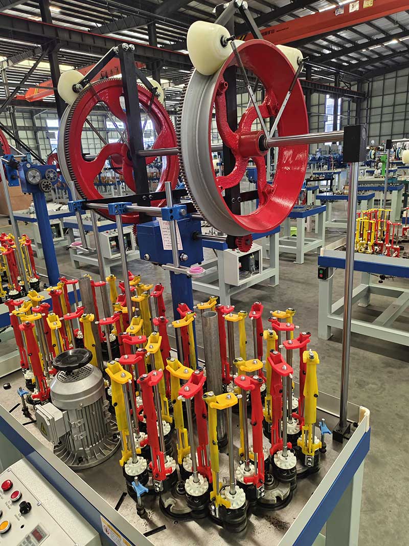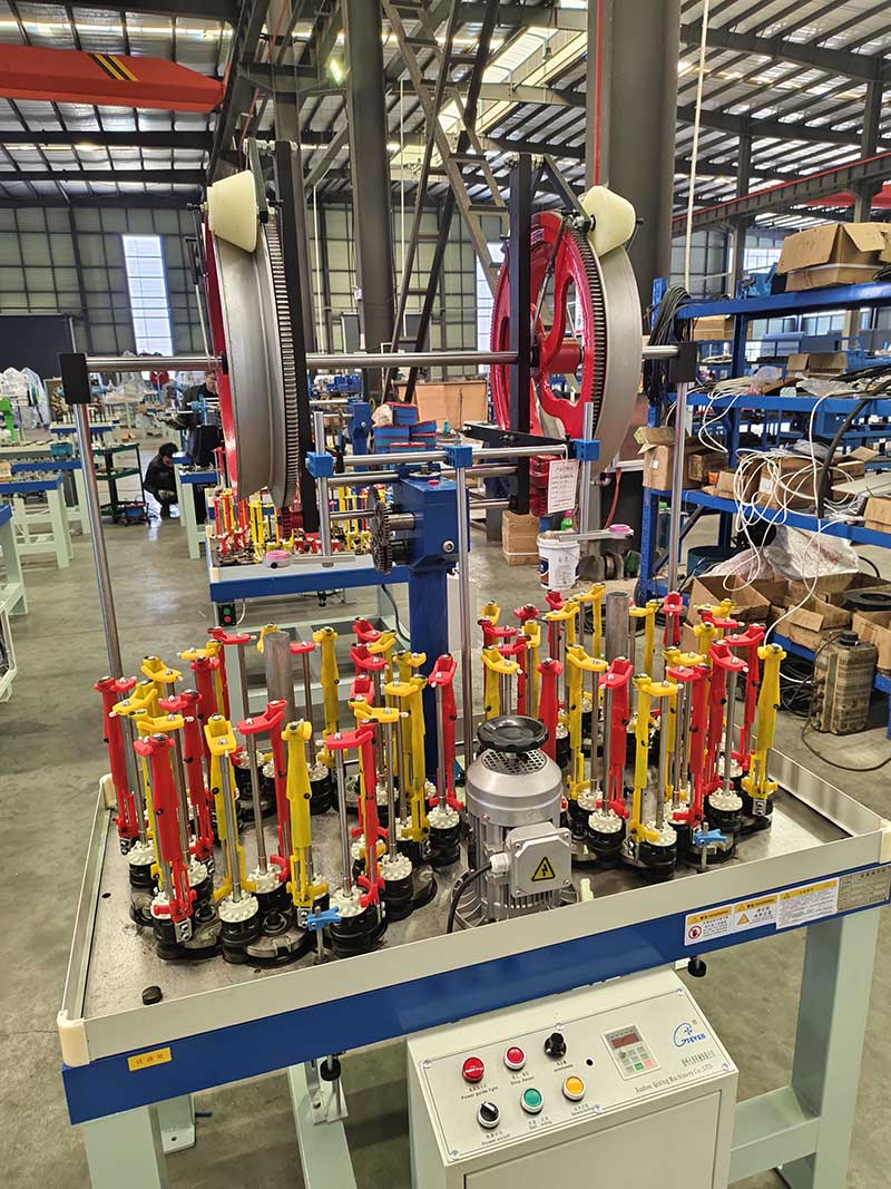 24錠編織7*14、9*15、10*17膠管,加中心芯管配送膠裝置。380V益電通,110錠子紗管尺寸57*210可纏繞膜密封,掛線出廠。