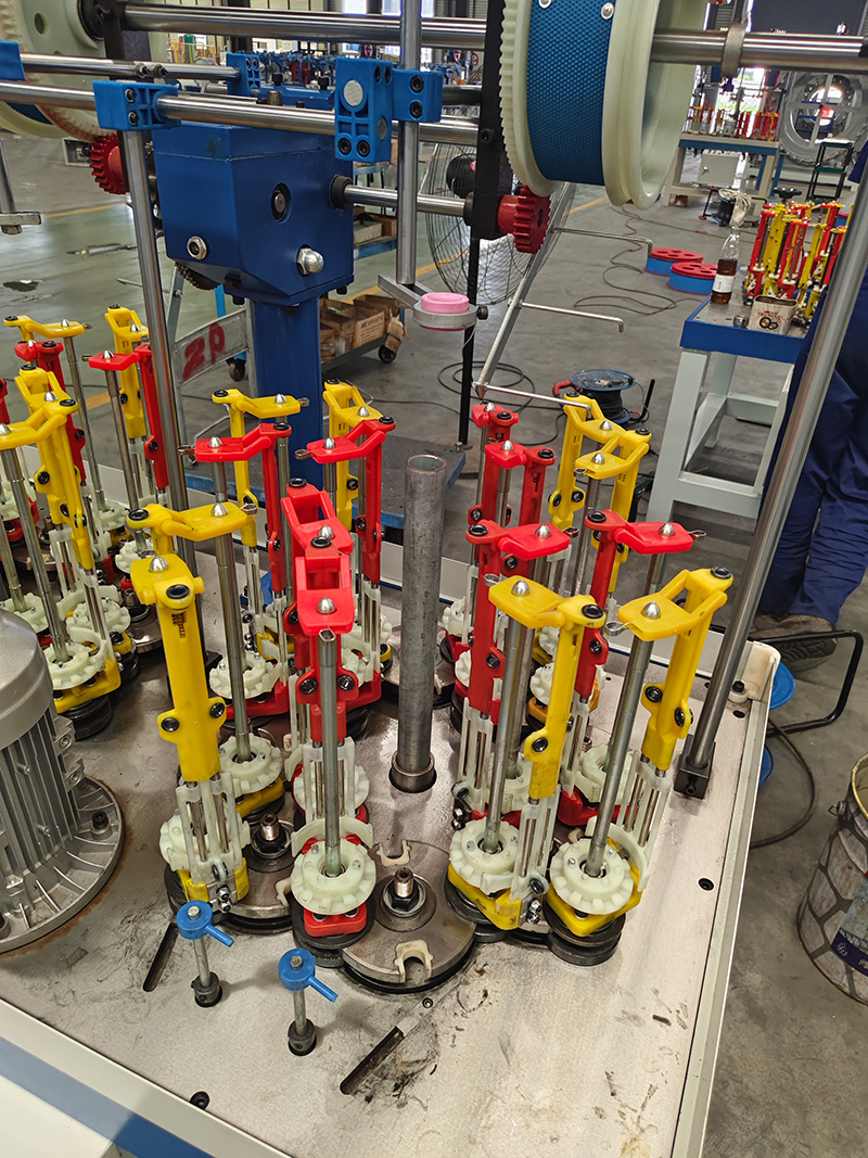 中心芯管,380V,三相,益電通。1、編織8股壓一繩帶,雙走樣式上錠子 2、130錠子0.6簧 ,130紗管70*210。3、可纏繞膜密封,現場安裝調試。