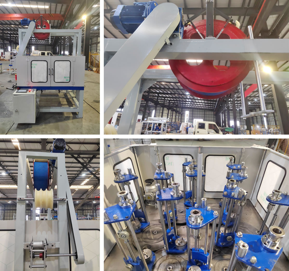 2、設備需加裝半封閉罩,2面需要帶門,高度和錠子齊平。2面帶門高度和錠子齊平。可自制錠子,175*300紗管,可纏繞膜密封,可掛線出廠。